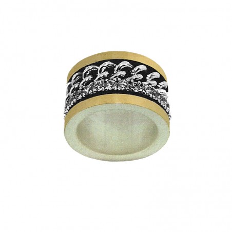 Anti-stress rotating silver 925Mls gold 375Mls ring with white zirconias