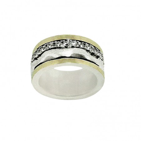 Anti-stress rotating silver 925Mls gold 375Mls ring with white zirconias